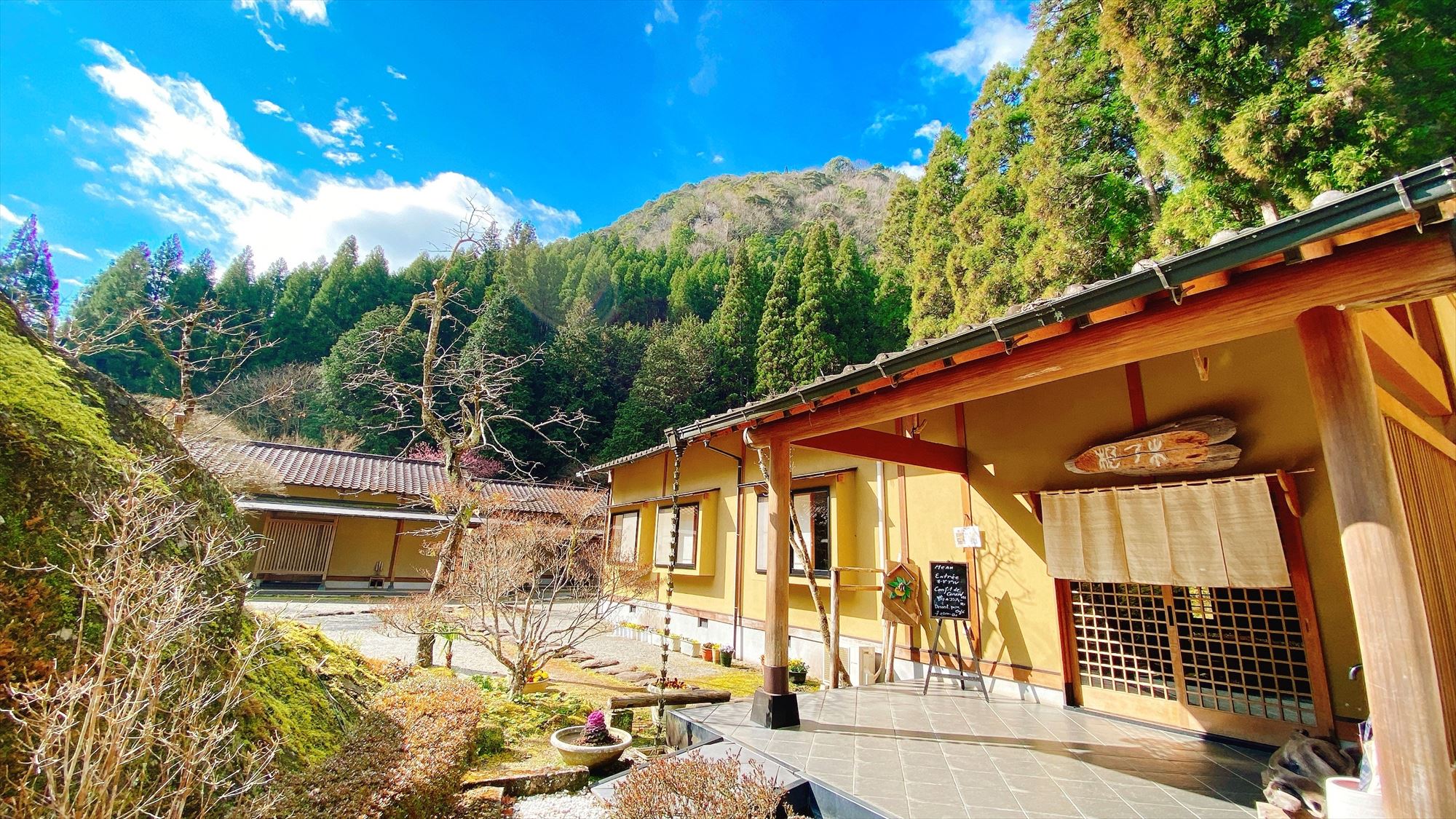 広々した敷地内では、数万個の耶馬渓の石と耶馬渓ダムの水を利用して表現された渓流を見ることができます。